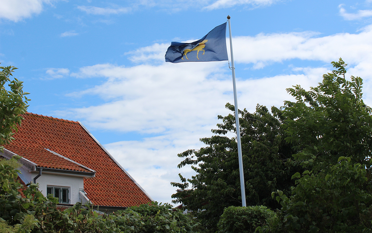 Flaggan visar en gul hjort på blått fält, och hjortarna kan man ännu idag se på Ölands sydligaste udde, vid Långe Jan.